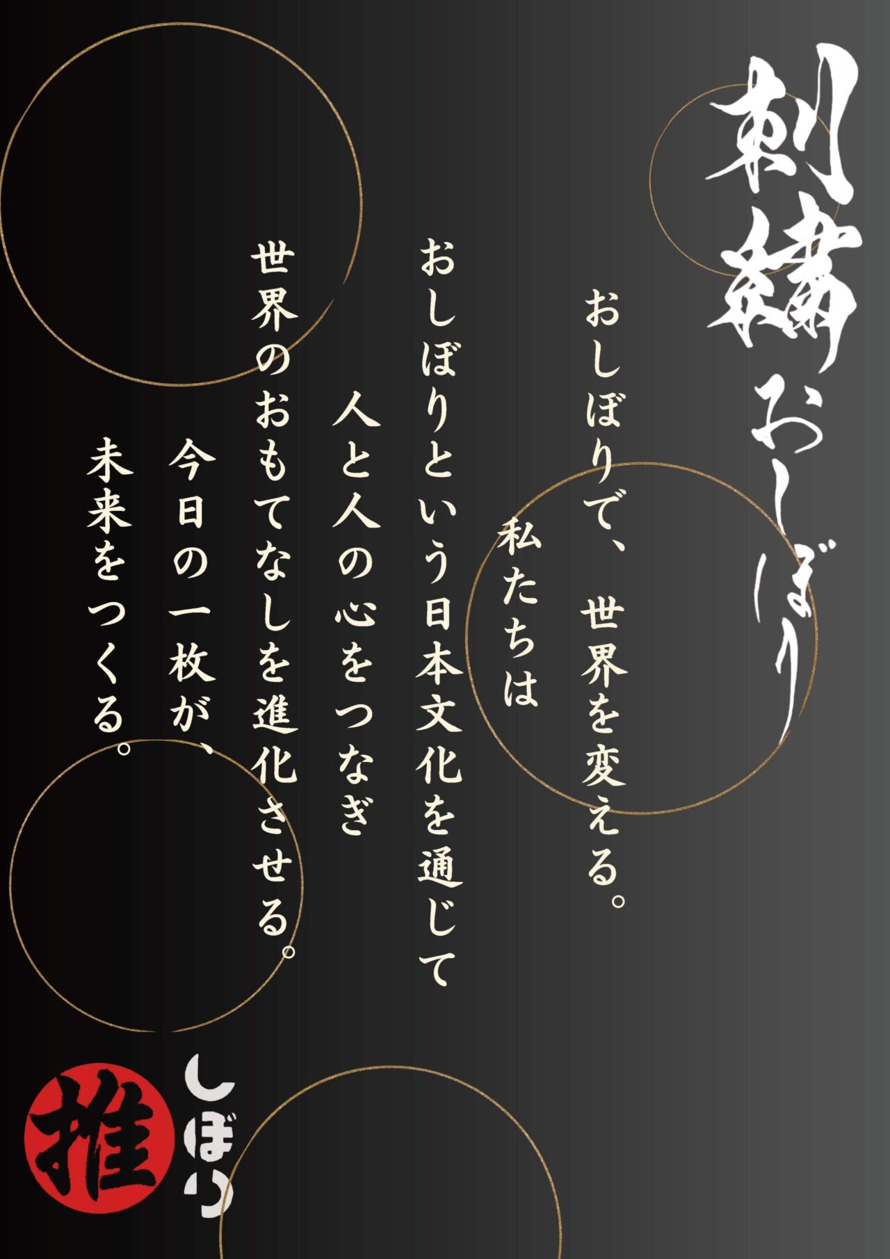 推しぼりドットコムは、刺繍おしぼりを通じて日本のおもてなし文化を次世代へ、そして世界へつないでいきます。